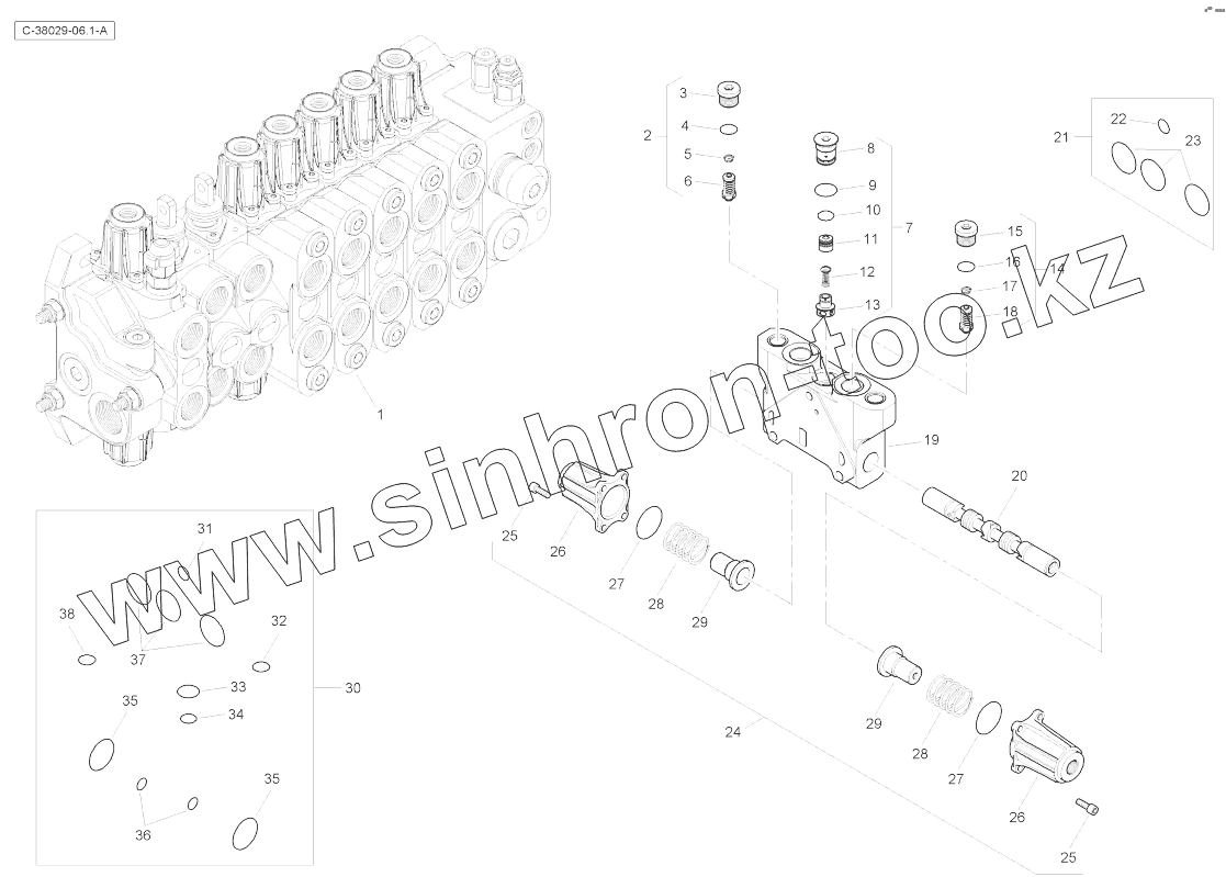 Каталог запасных частей к технике: RM-Terex TLB-890 (часть 1). Digger Valve - without Digger - Servo