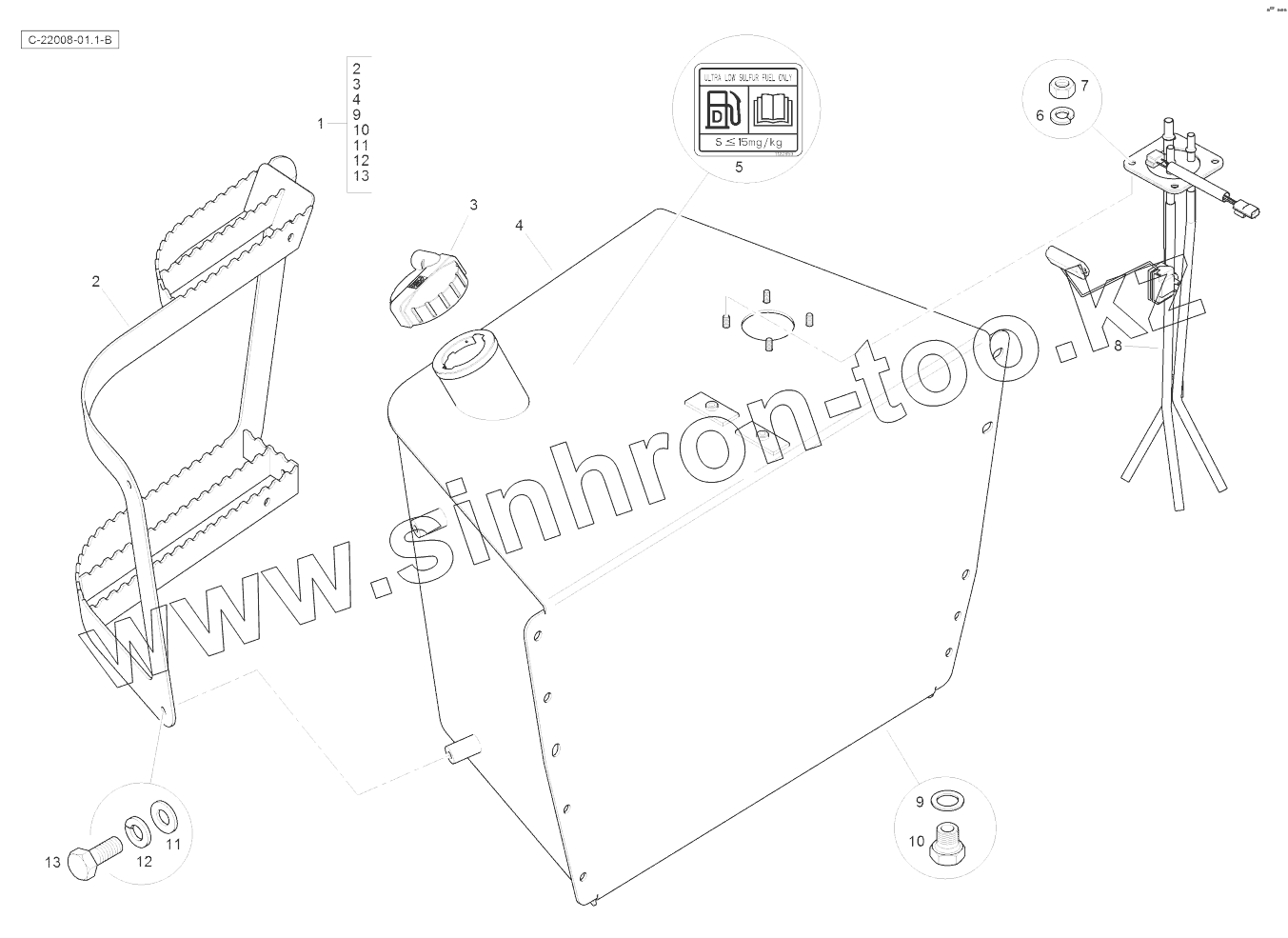 Каталог запасных частей к технике: RM-Terex TLB-890 (часть 1). Fuel System - Fuel Tank
