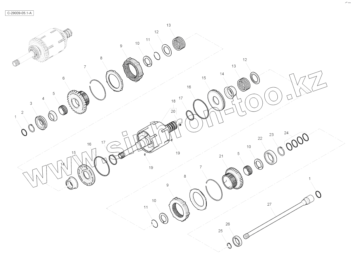 Каталог запасных частей к технике: RM-Terex TLB-890 (часть 1). Transmission - Input & PTO Shafts