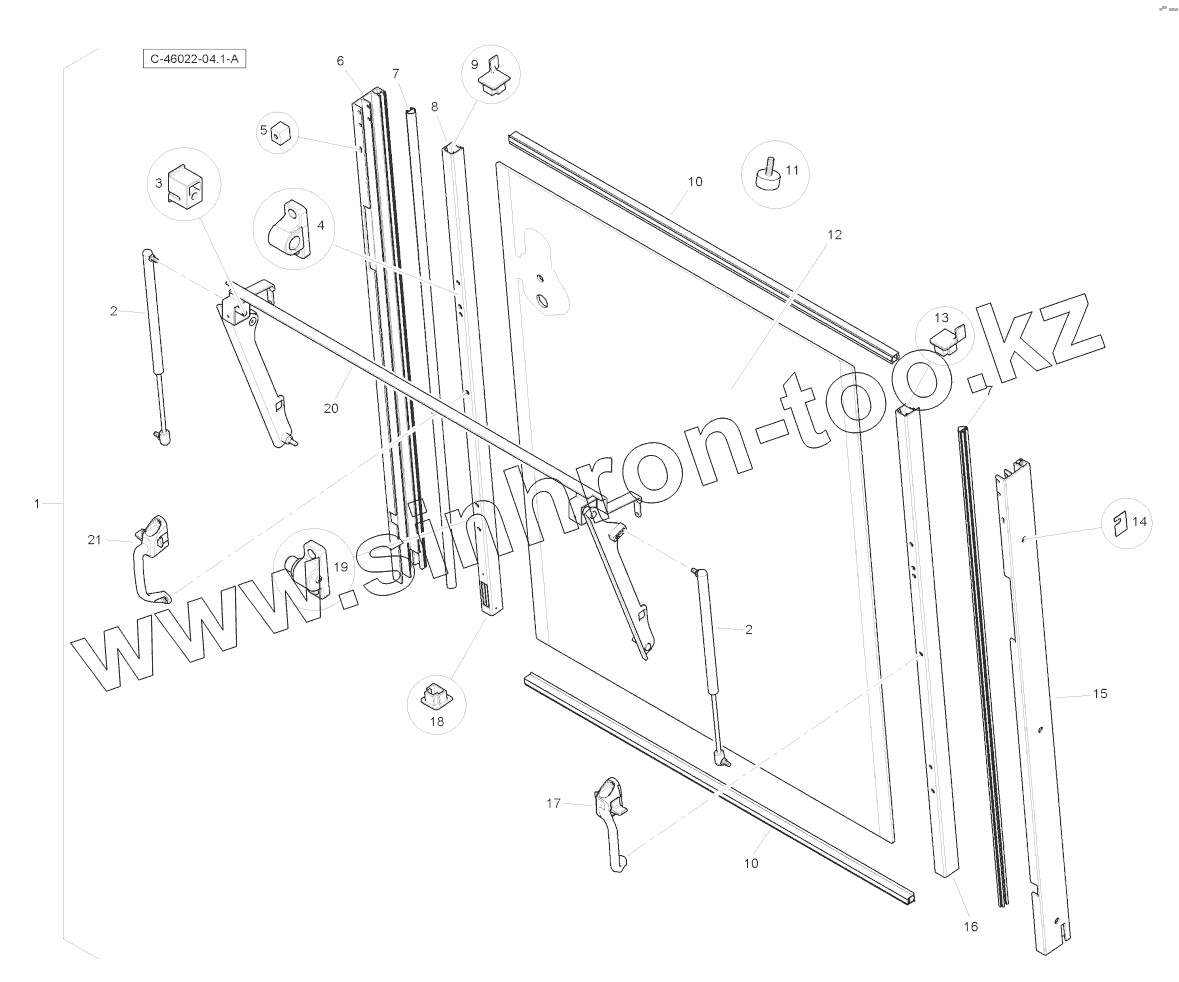Каталог запасных частей к технике: RM-Terex TLB-890 (часть 2). Cab - Rear Window