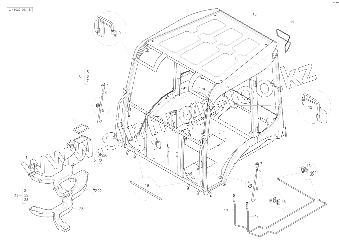 Каталог запасных частей к технике: RM-Terex TLB-890 (часть 2). Cab - Structure