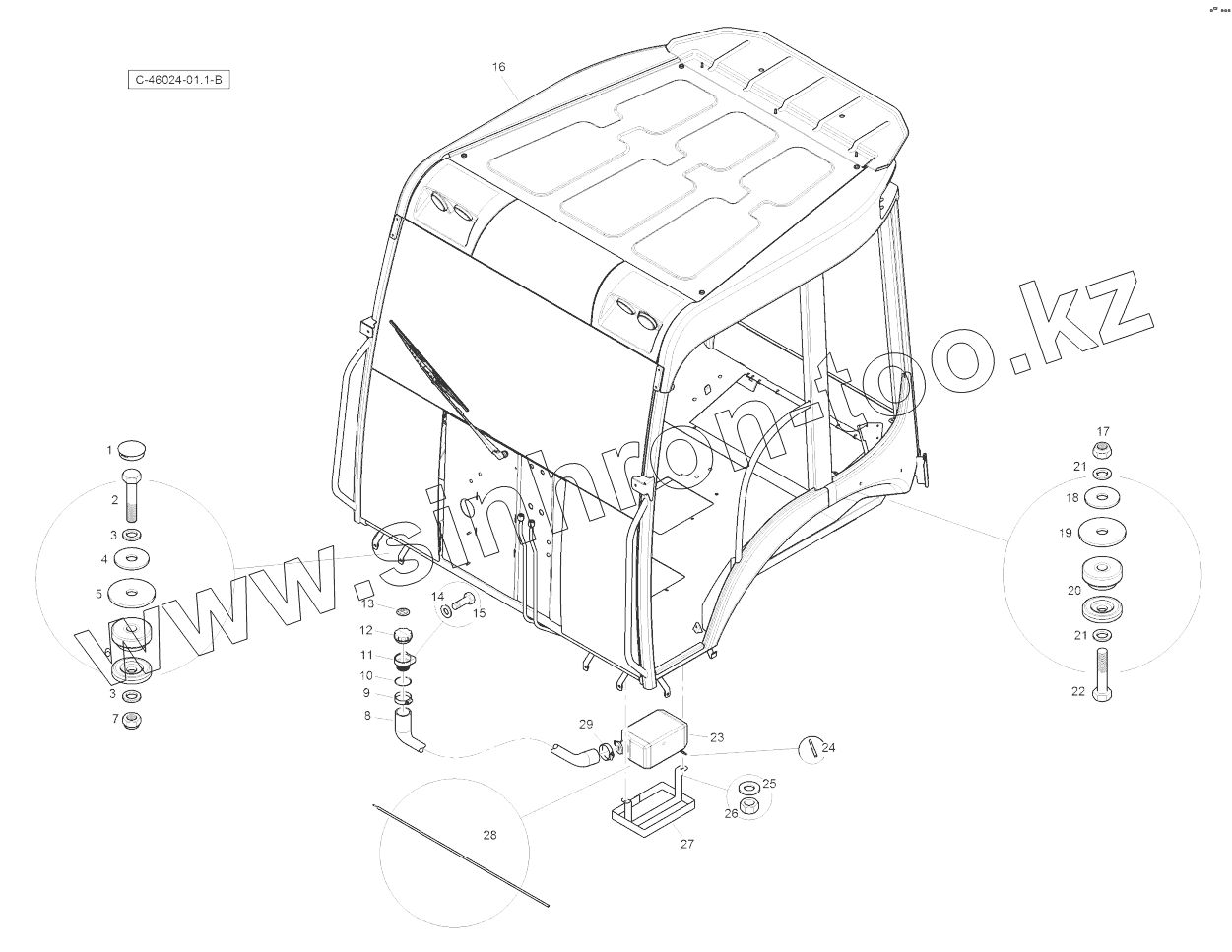 Каталог запасных частей к технике: RM-Terex TLB-890 (часть 2). Canopy - with windscreen - Structure - Mounts