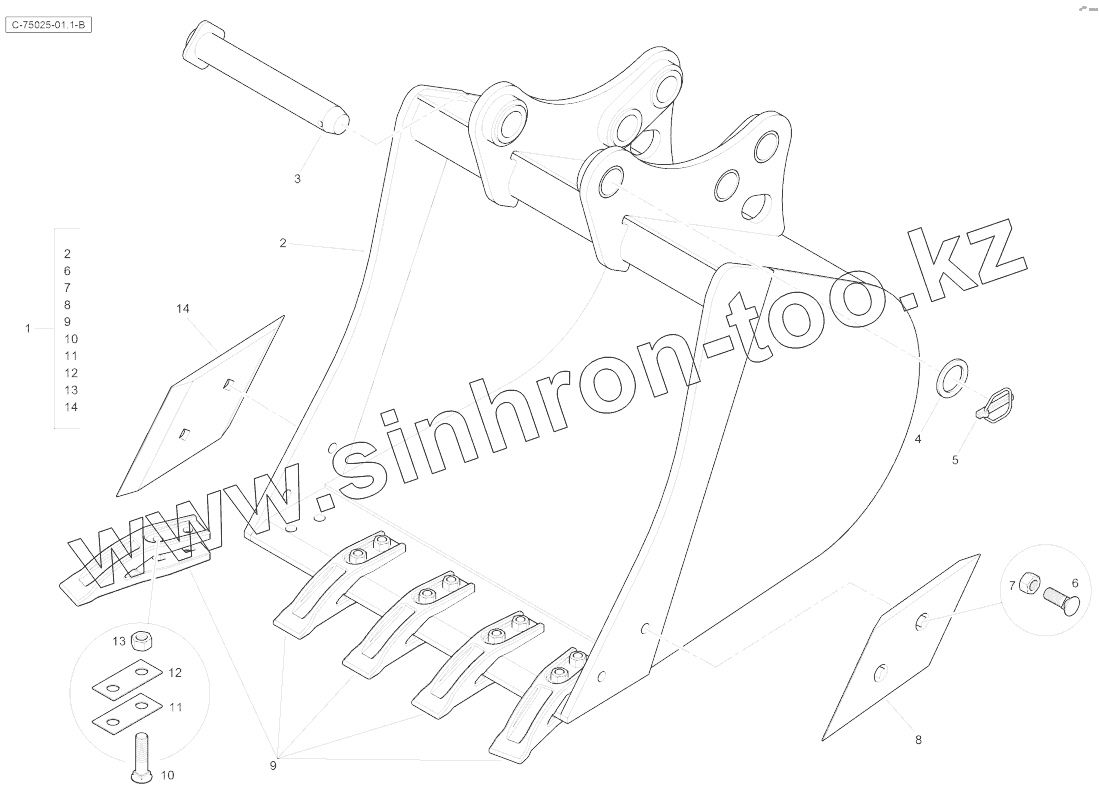 Каталог запасных частей к технике: RM-Terex TLB-890 (часть 2). Digger Bucket - Heavy Duty - 750mm