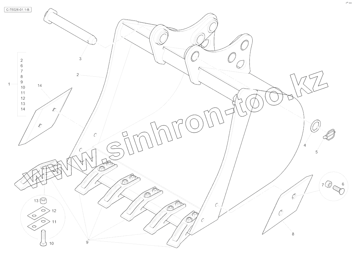 Каталог запасных частей к технике: RM-Terex TLB-890 (часть 2). Digger Bucket - Heavy Duty - 900mm