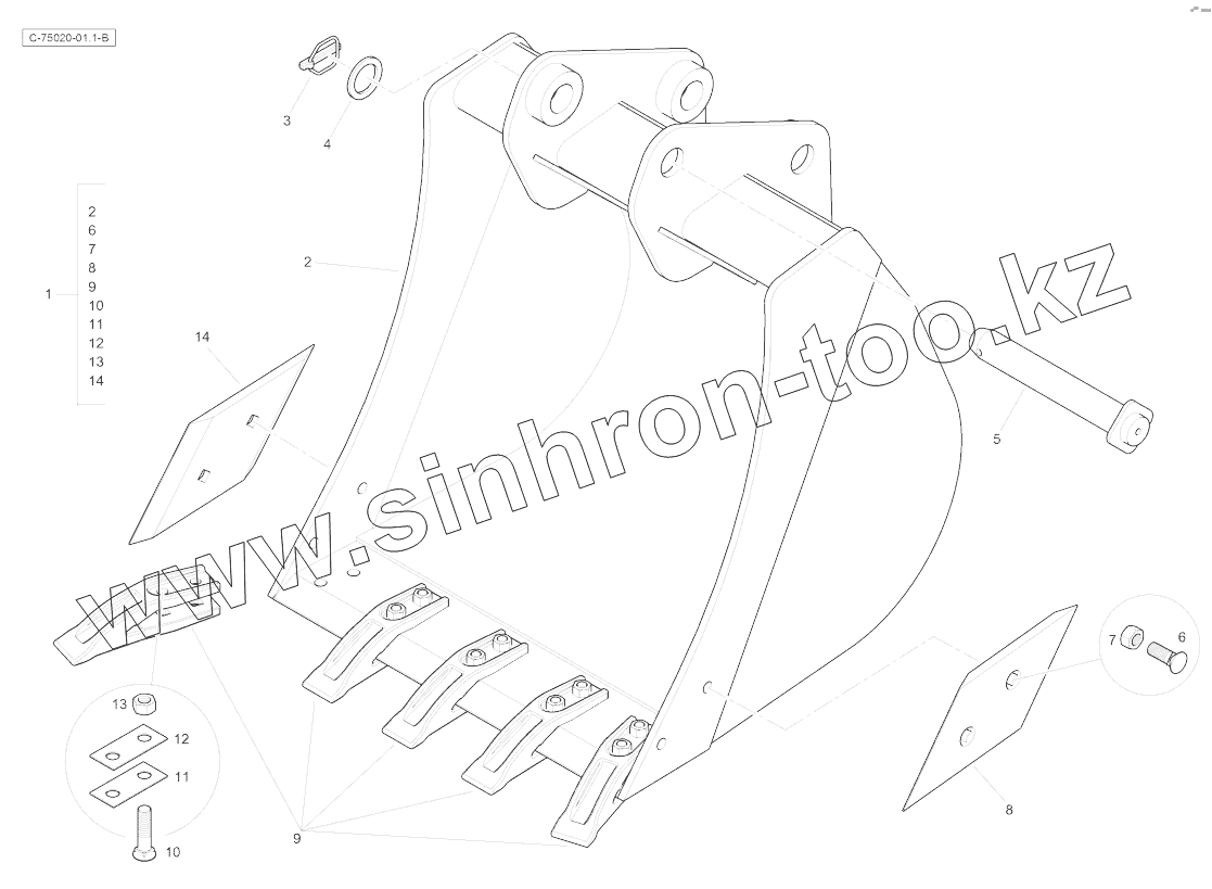 Каталог запасных частей к технике: RM-Terex TLB-890 (часть 2). Digger Bucket - Standard - 750mm