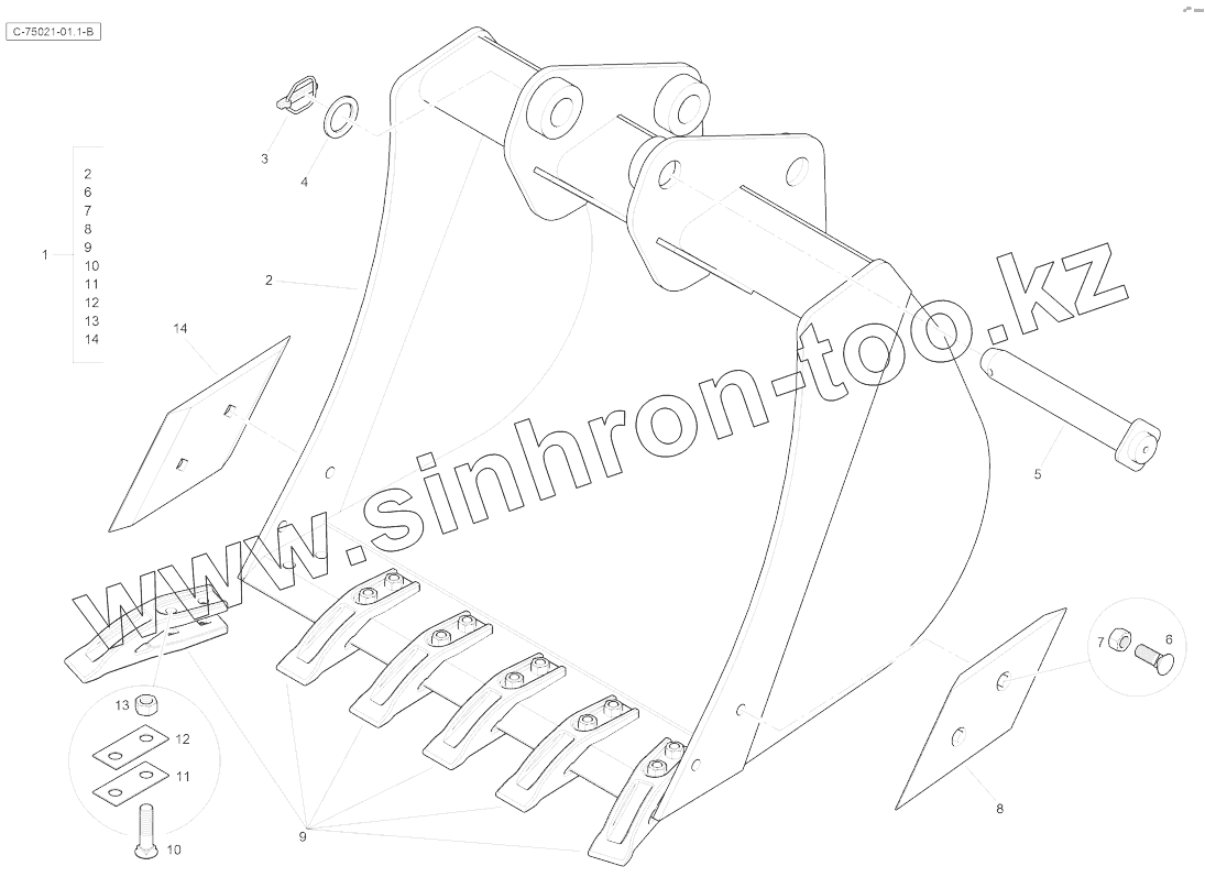 Каталог запасных частей к технике: RM-Terex TLB-890 (часть 2). Digger Bucket - Standard - 900mm