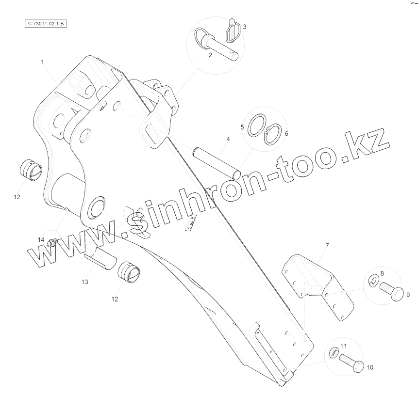 Каталог запасных частей к технике: RM-Terex TLB-890 (часть 2). Dipper - Outer - 15ft - Yellow