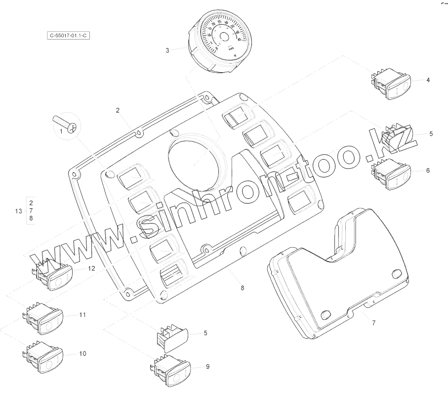 Каталог запасных частей к технике: RM-Terex TLB-890 (часть 2). Front Console - with Speedometer