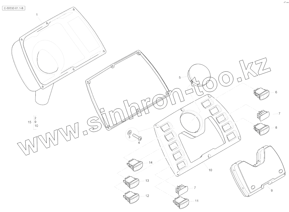 Каталог запасных частей к технике: RM-Terex TLB-890 (часть 2). Front Console - without Speedometer - Canopy