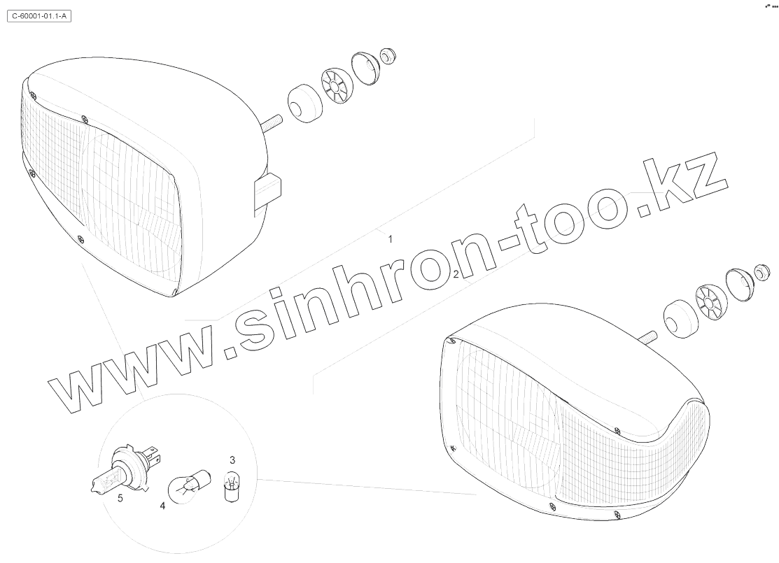 Каталог запасных частей к технике: RM-Terex TLB-890 (часть 2). Headlights - Left Hand Dip