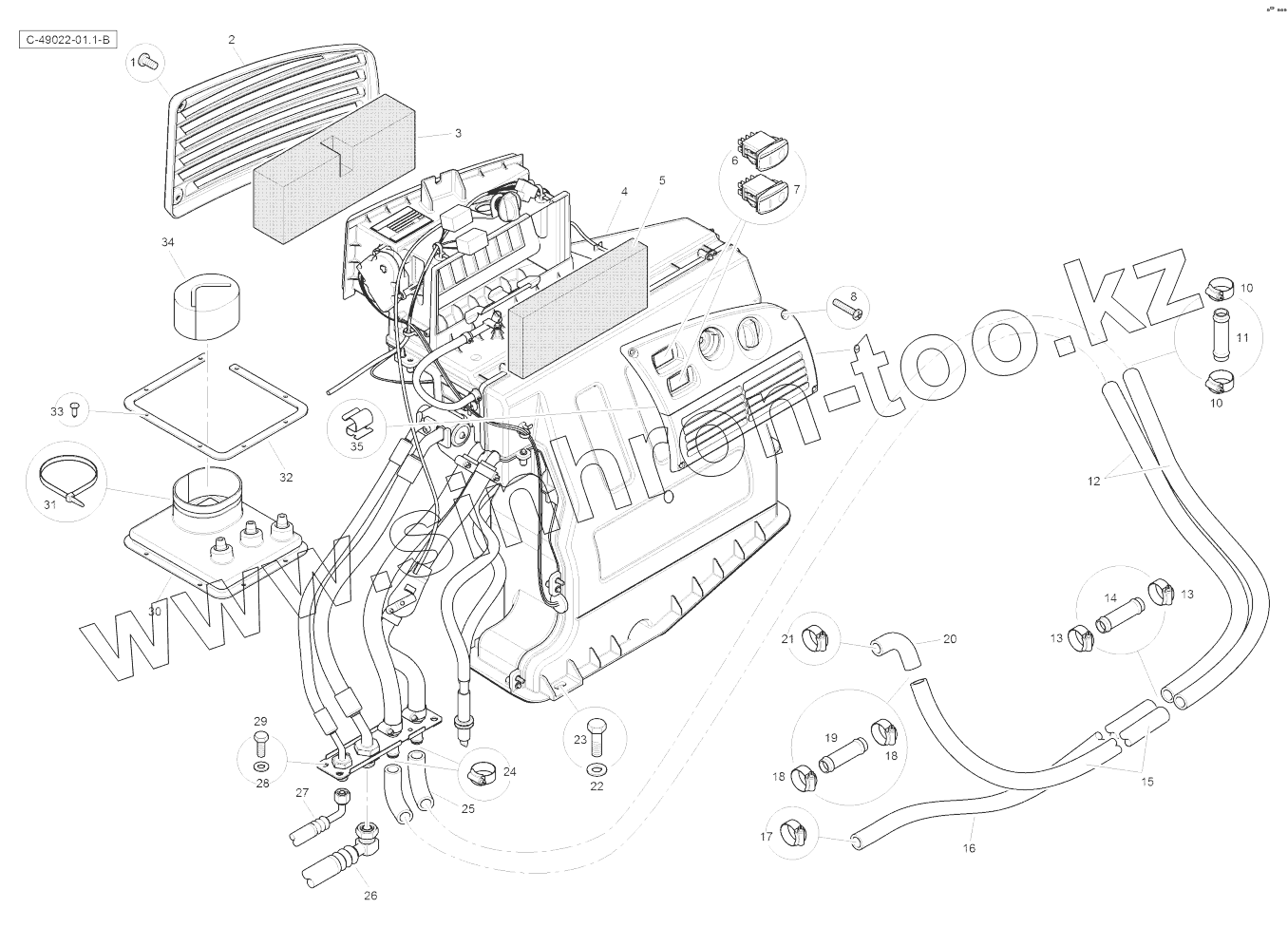 Каталог запасных частей к технике: RM-Terex TLB-890 (часть 2). Heater - Cab - with Air Con