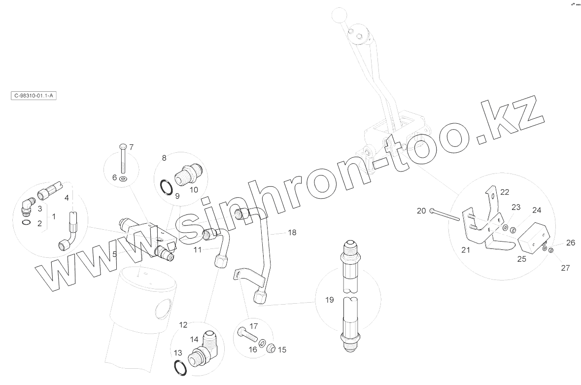Патрубок в сборе - Линия управления лопатой погрузчика