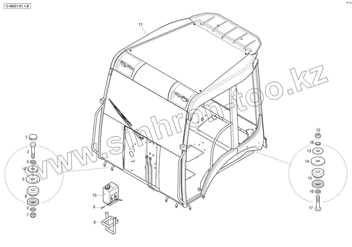 Каталог запасных частей к технике: RM-Terex TLB-990 Tier 3. Canopy - with windscreen - Structure - Mounts