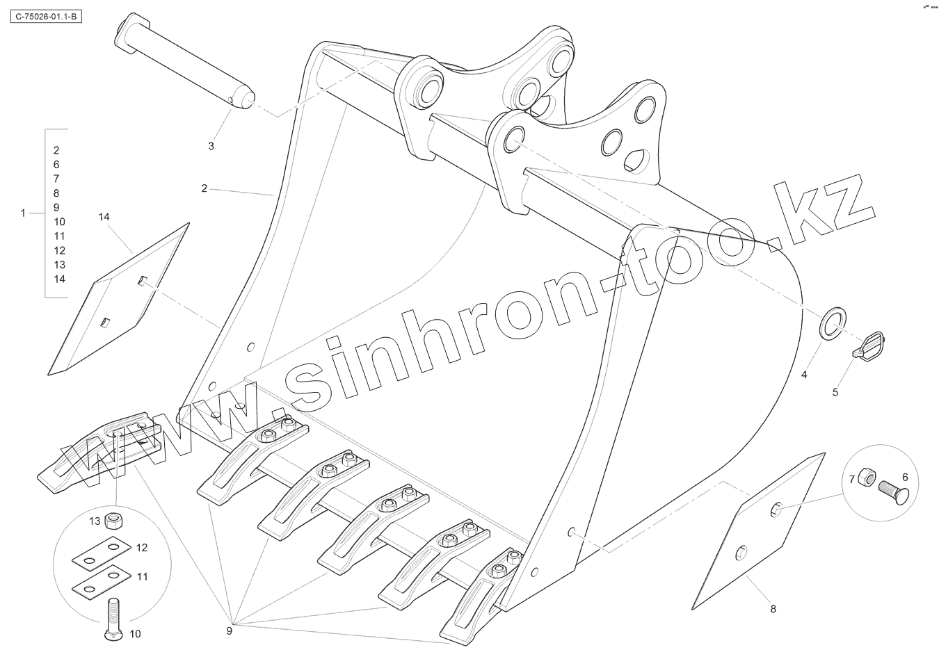 Каталог запасных частей к технике: RM-Terex TLB-990 Tier 3. Digger Bucket - Heavy Duty - 900mm