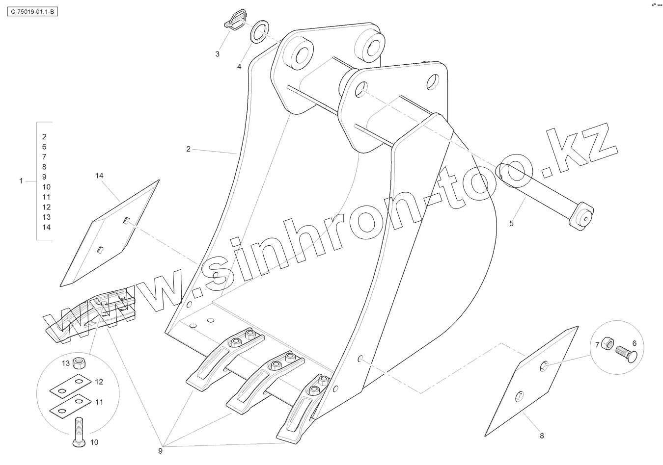 Каталог запасных частей к технике: RM-Terex TLB-990 Tier 3. Digger Bucket - Standard - 600mm