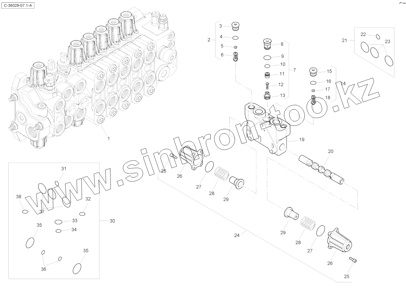 Каталог запасных частей к технике: RM-Terex TLB-990 Tier 3. Digger Valve - without Digger - Servo