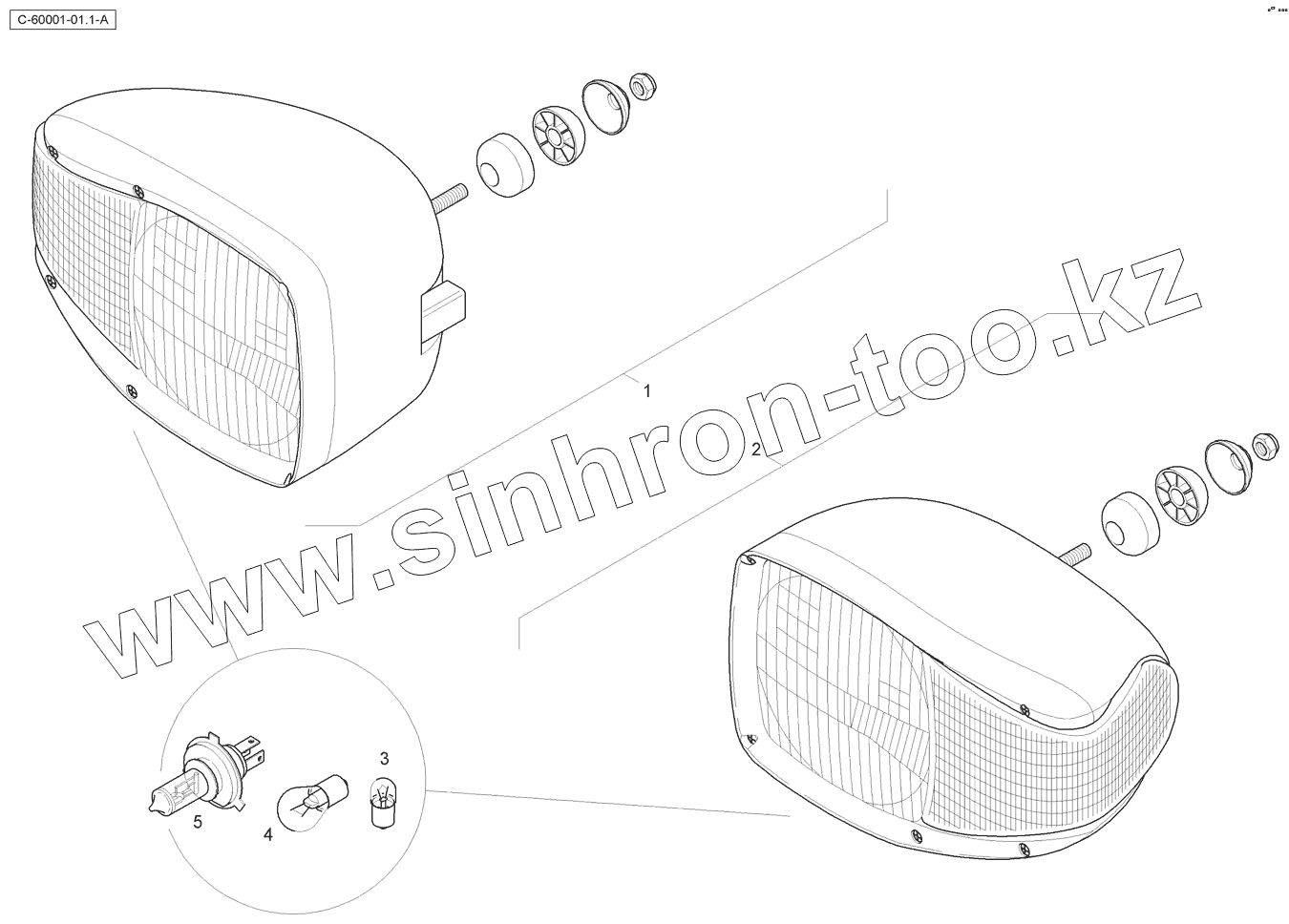 Каталог запасных частей к технике: RM-Terex TLB-990 Tier 3. Headlights - Left Hand Dip