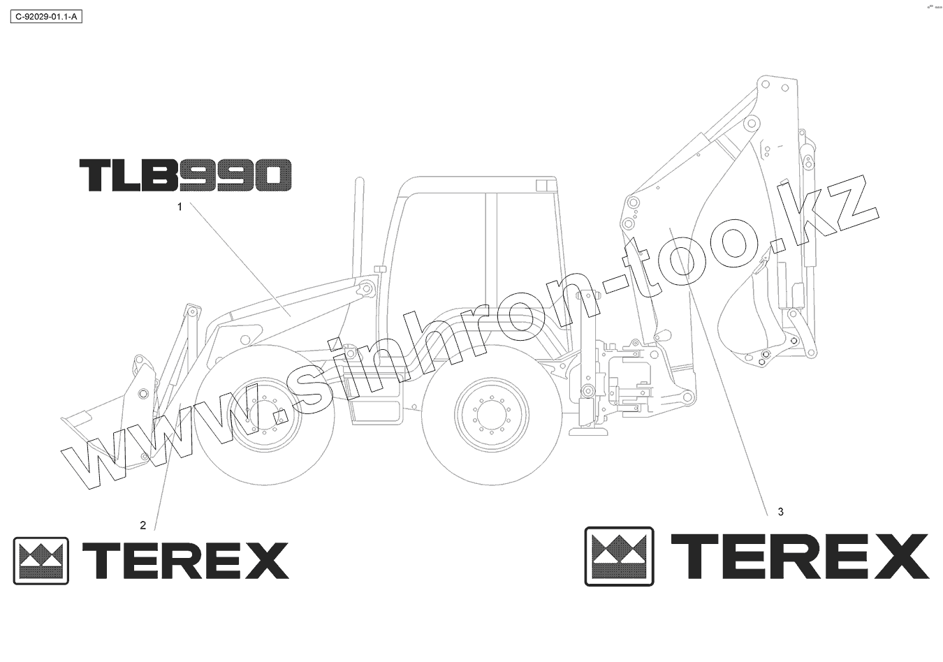 Каталог запасных частей к технике: RM-Terex TLB-990 Tier 3. Machine Identity Decals - TLB990