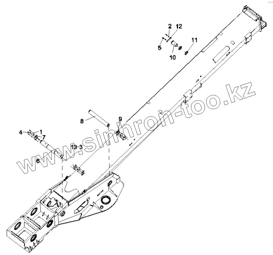 Каталог запасных частей к технике: SANY QY50CS93. 10057072 Fixing, shaft, triple-hinge