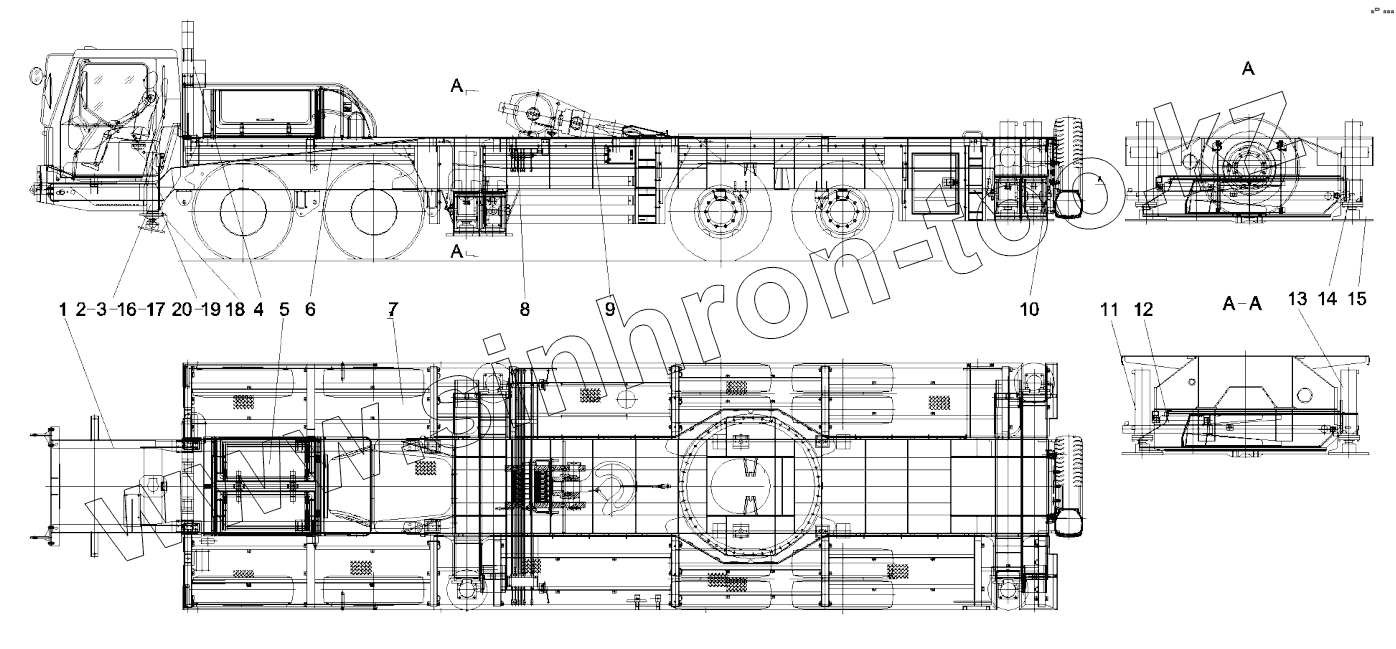 Каталог запасных частей к технике: SANY QY50CS93. 10221787 Main body, structure