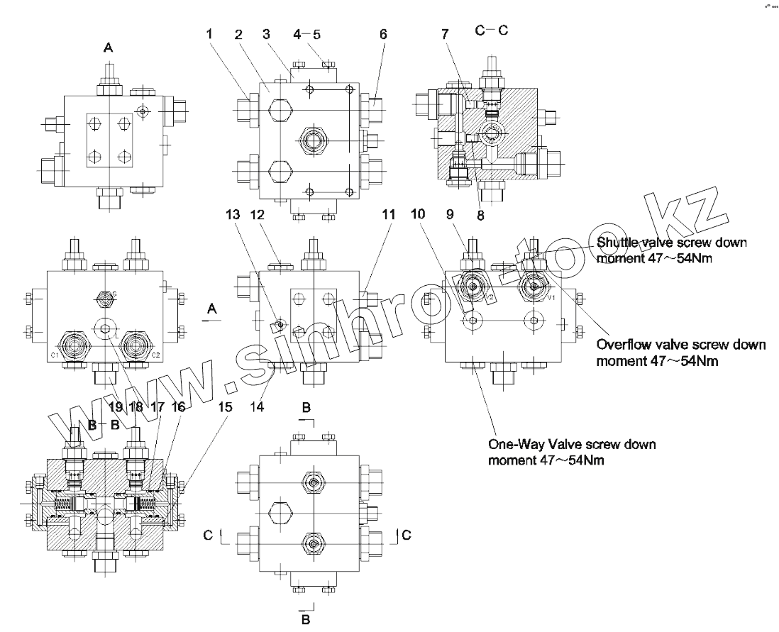 Каталог запасных частей к технике: SANY QY50CS93. 11011669 Cushion valve assy, swing