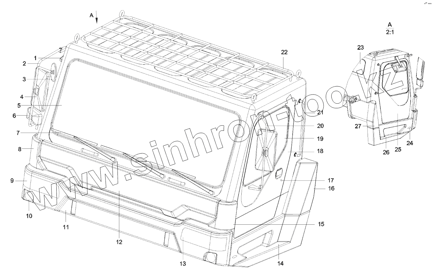Каталог запасных частей к технике: SANY QY50CS93. 60019171 Cab assy, operator