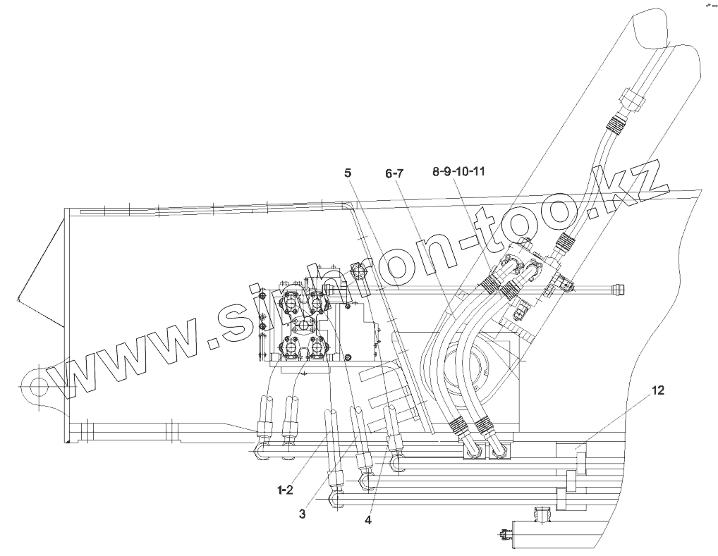Каталог запасных частей к технике: SANY RSC45C. 10450647 Frame pipeline layout RSC45M.2.1