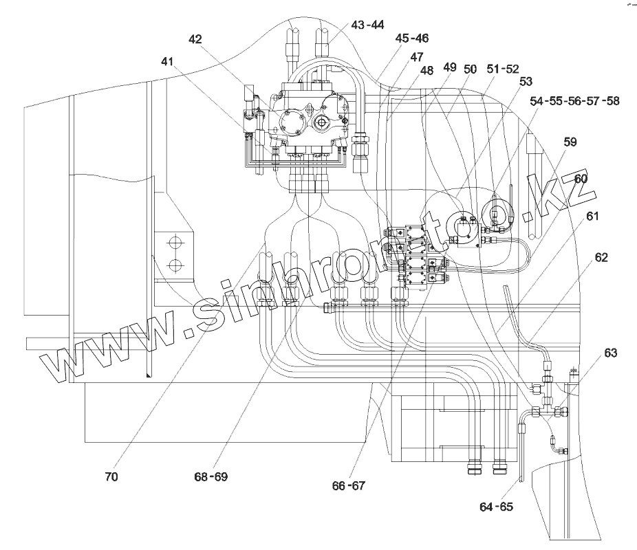Каталог запасных частей к технике: SANY RSC45C. 10450647 Frame pipeline layout RSC45M.2.1