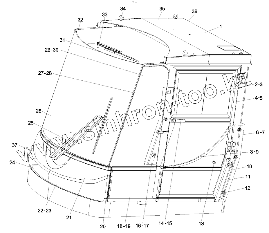 Каталог запасных частей к технике: SANY RSC45C. 11227769 Cab assembly SRSC45F.4