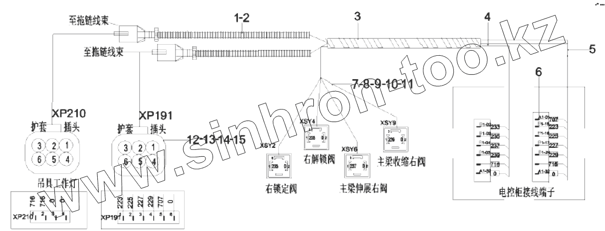 Каталог запасных частей к технике: SANY SDCY90K6C. 12545843 Harness, right, rudder