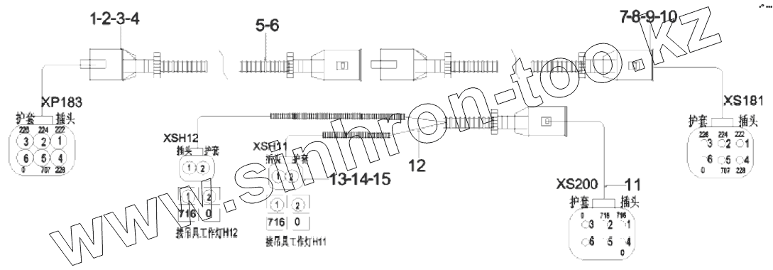 Каталог запасных частей к технике: SANY SDCY90K6C. 12545855 Harness, tow chain left