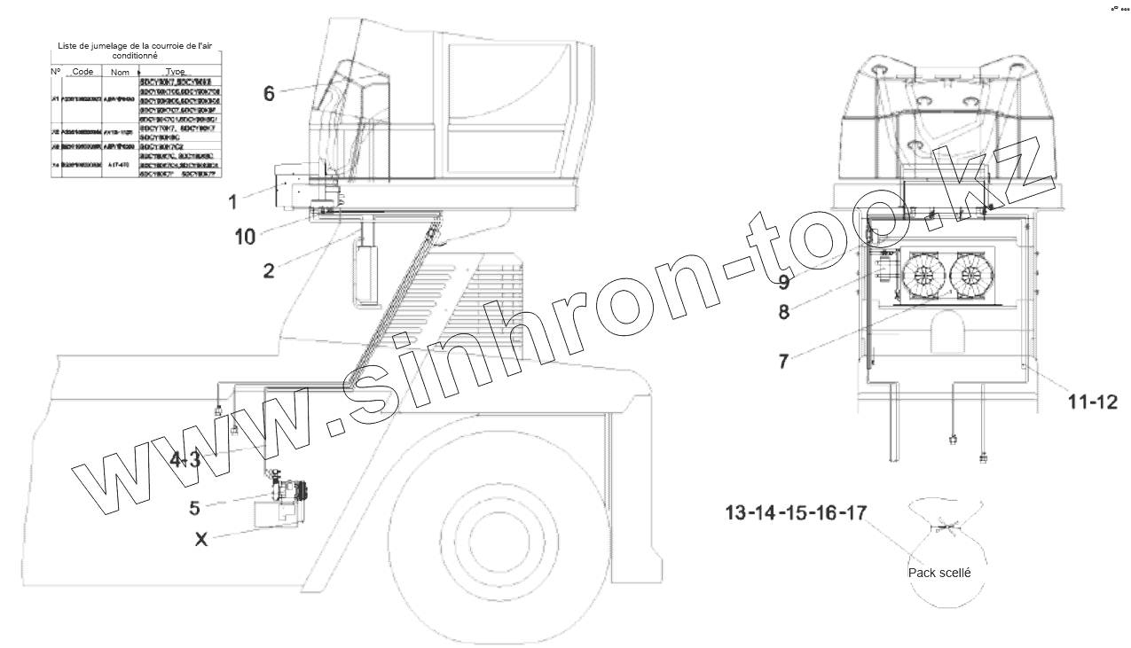Каталог запасных частей к технике: SANY SDCY90K6C. 60100848 Air conditioner