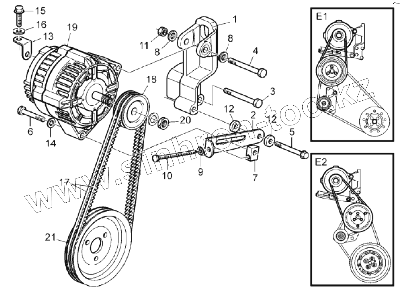 Каталог запасных частей к технике: SANY SDCY90K6C. 60138783 Alternator, AC, top right mounted