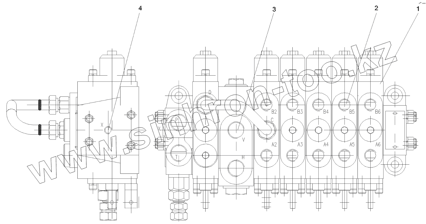 Каталог запасных частей к технике: SANY STC250H. 10138579 Valve GP, multiway