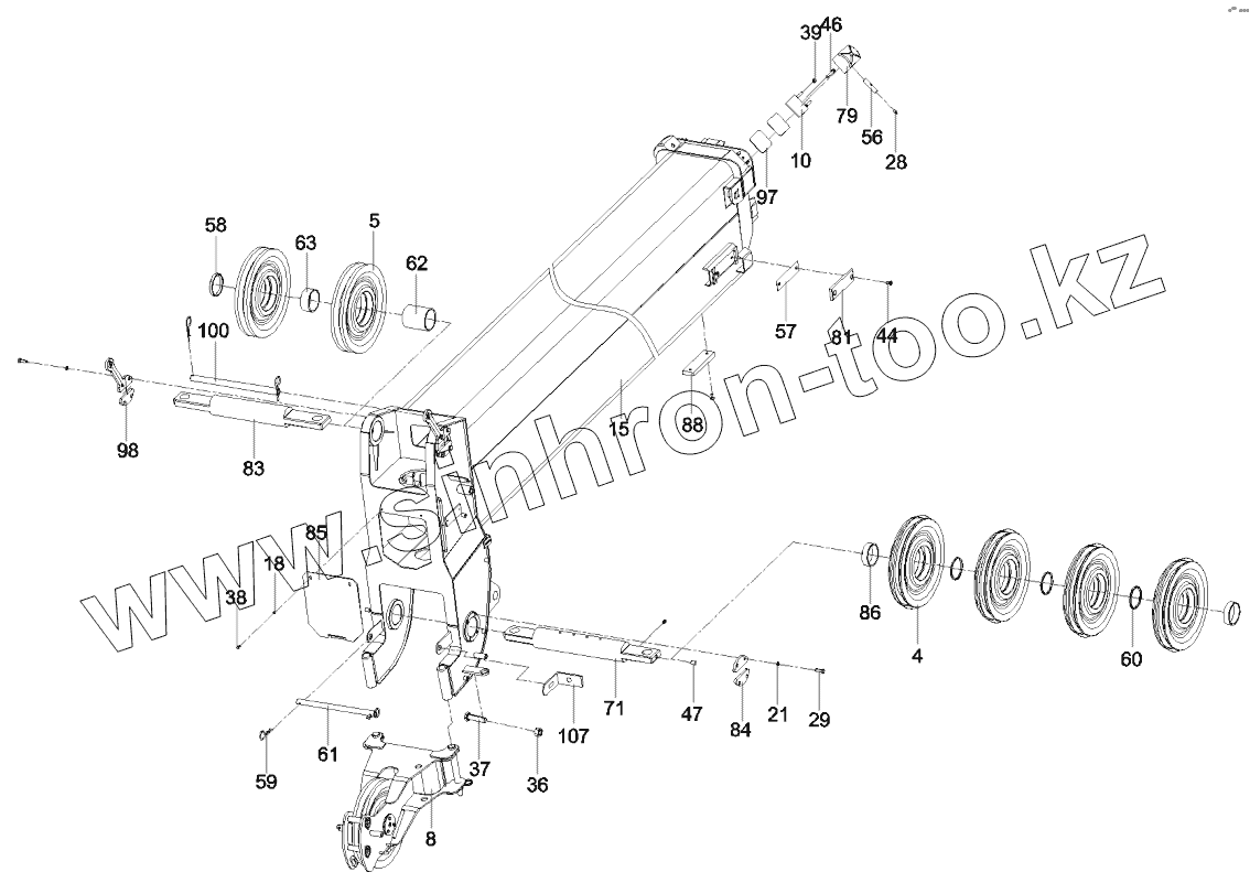 Каталог запасных частей к технике: SANY STC250H. 12176374 Hoisting boom assembly STC250H.1B