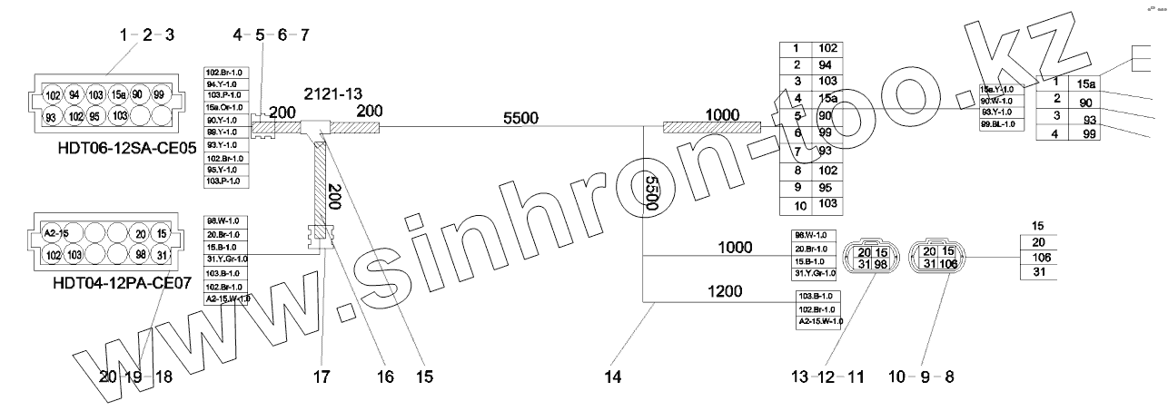 Каталог запасных частей к технике: SANY STC250H. 12300302 Boom harness