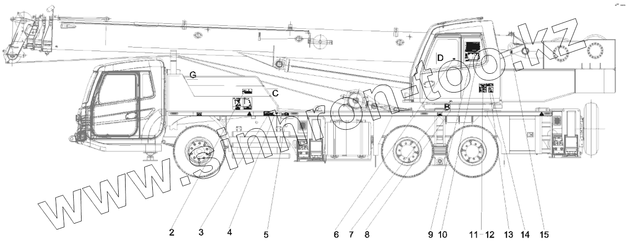 Каталог запасных частей к технике: SANY STC250S5. 11702832 Layout plan, nameplate