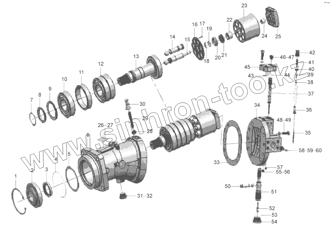 Каталог запасных частей к технике: SANY STC250S5. 60156515 Plunger Motor