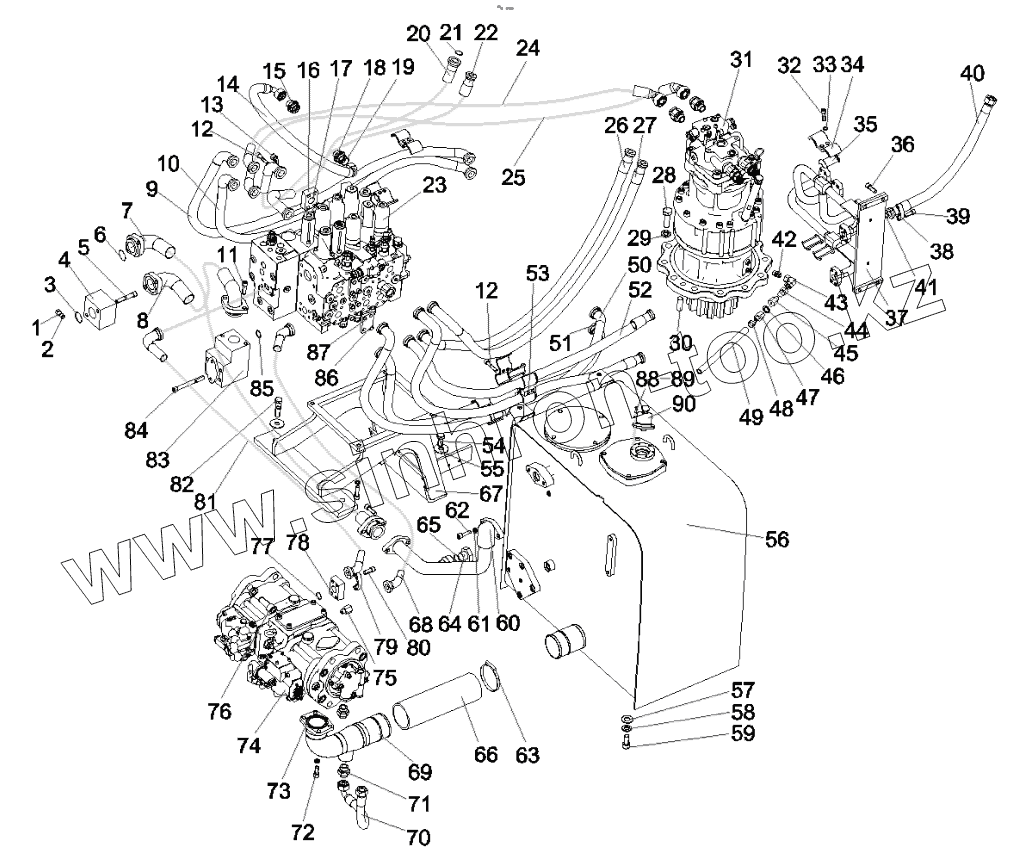 Каталог запасных частей к технике: SANY SY210C8. 10184254 Lines - Main (Hyd.)