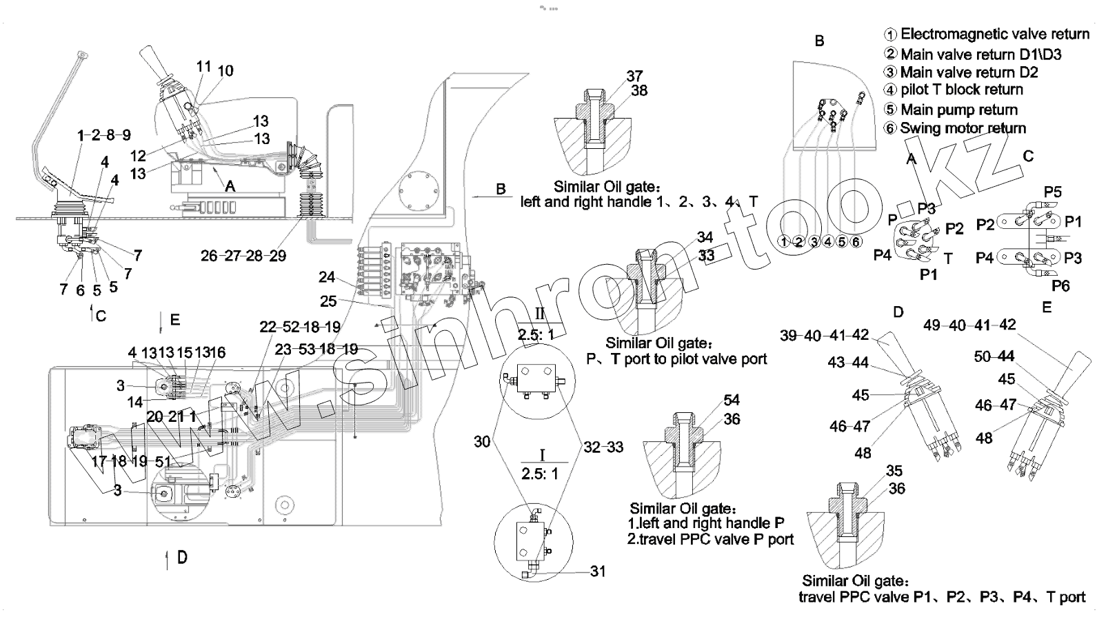 Каталог запасных частей к технике: SANY SY210C8. 10184632 PPC Lines
