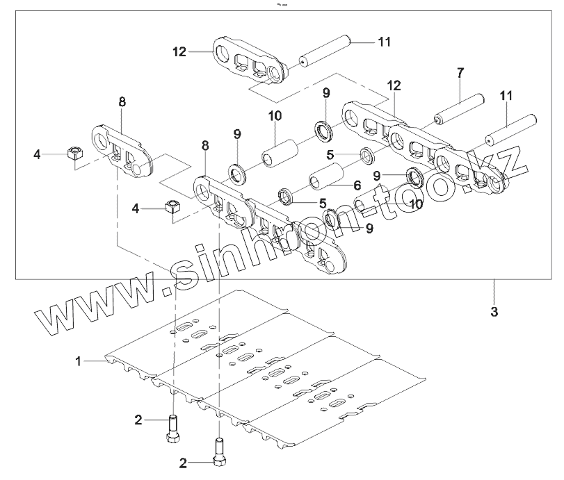 Каталог запасных частей к технике: SANY SY215C9. 12670075 Crawler assemblySTC190MB-8047