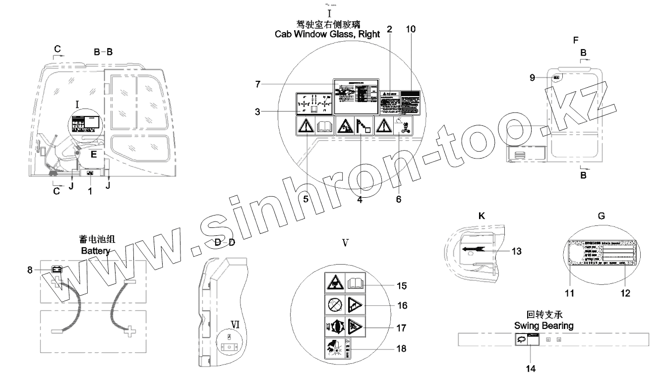 Decal, waming, swing bearing