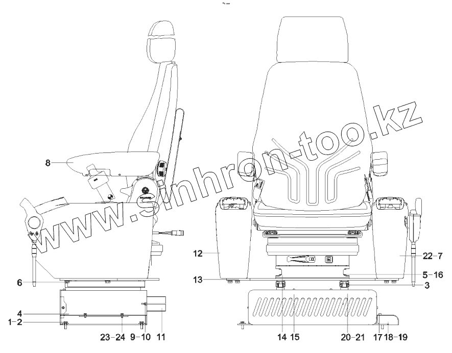 Каталог запасных частей к технике: SANY SY215C9. 12971069 Seat and controlbox SY215C9.1.5.5C