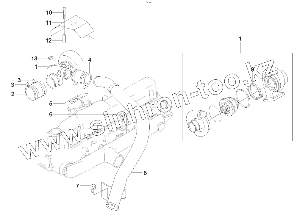 Каталог запасных частей к технике: SANY SY215C9. 60028467 Turbocharger