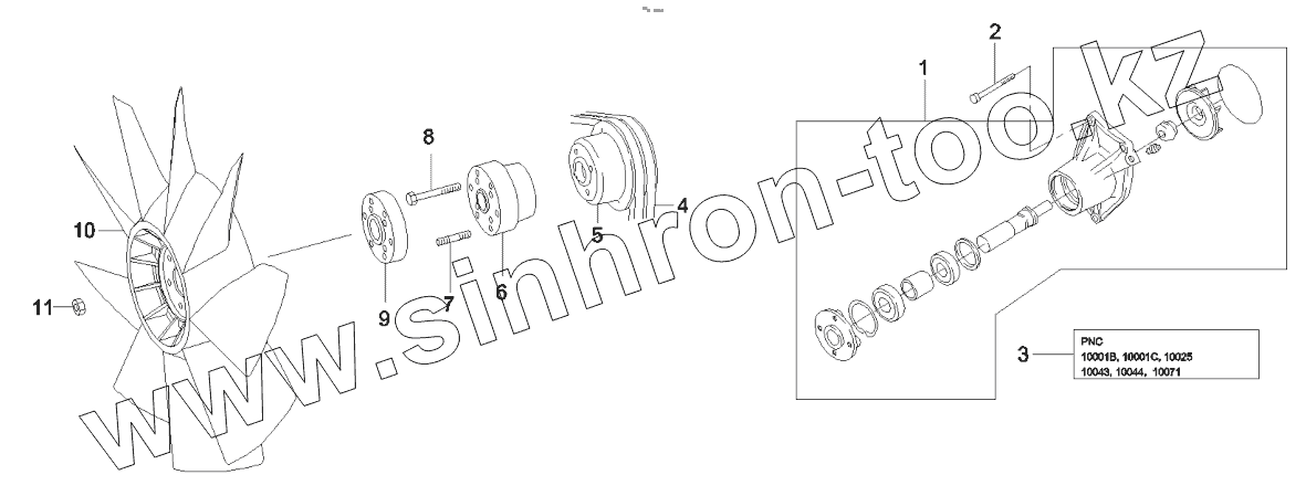 Каталог запасных частей к технике: SANY SY215C9. 60028494 Pump, Water & Fan