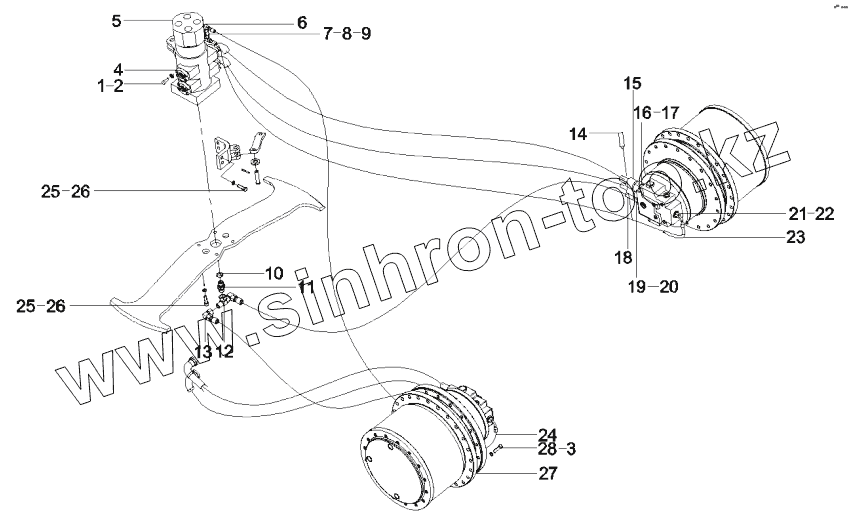 Каталог запасных частей к технике: SANY SY335C8. 11172918 Pipeline, hydraulic, lower frame AS