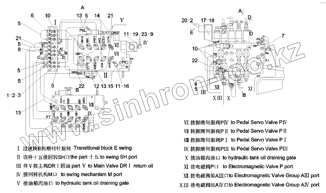 Каталог запасных частей к технике: SANY SY335C8. 11176769 Pipeline AS, main valve