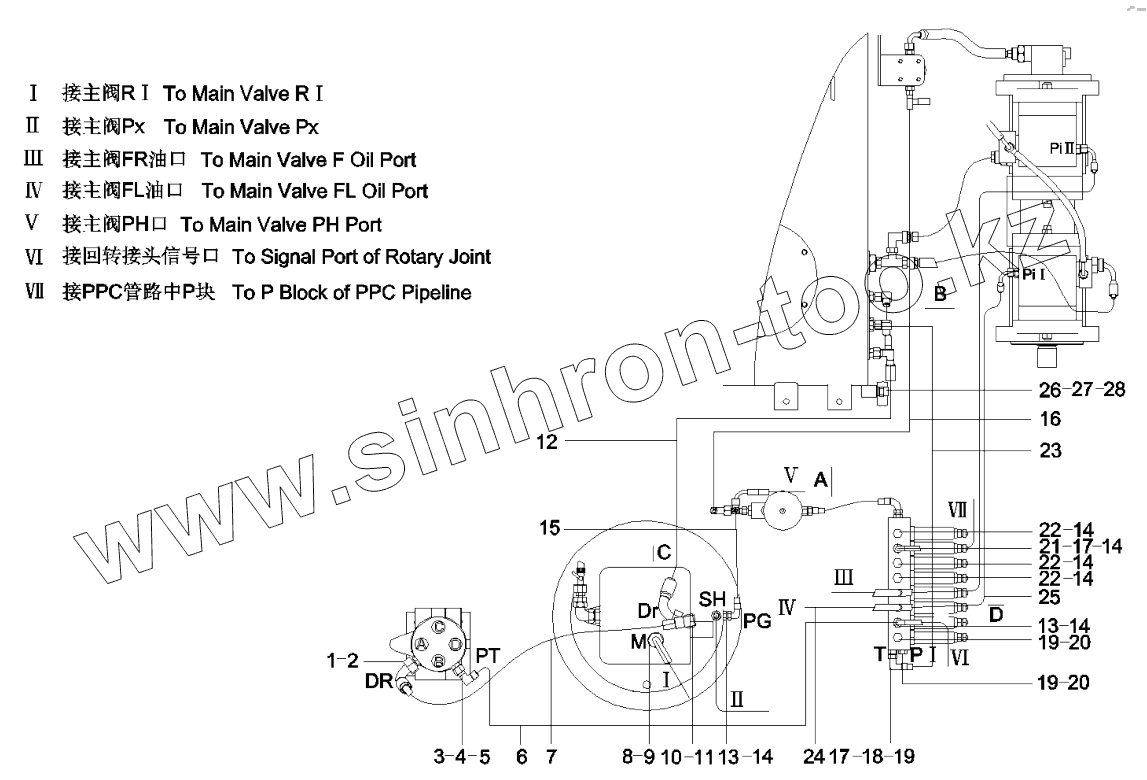 Каталог запасных частей к технике: SANY SY335C8. 11176771 Pipeline AS, solenoid valve