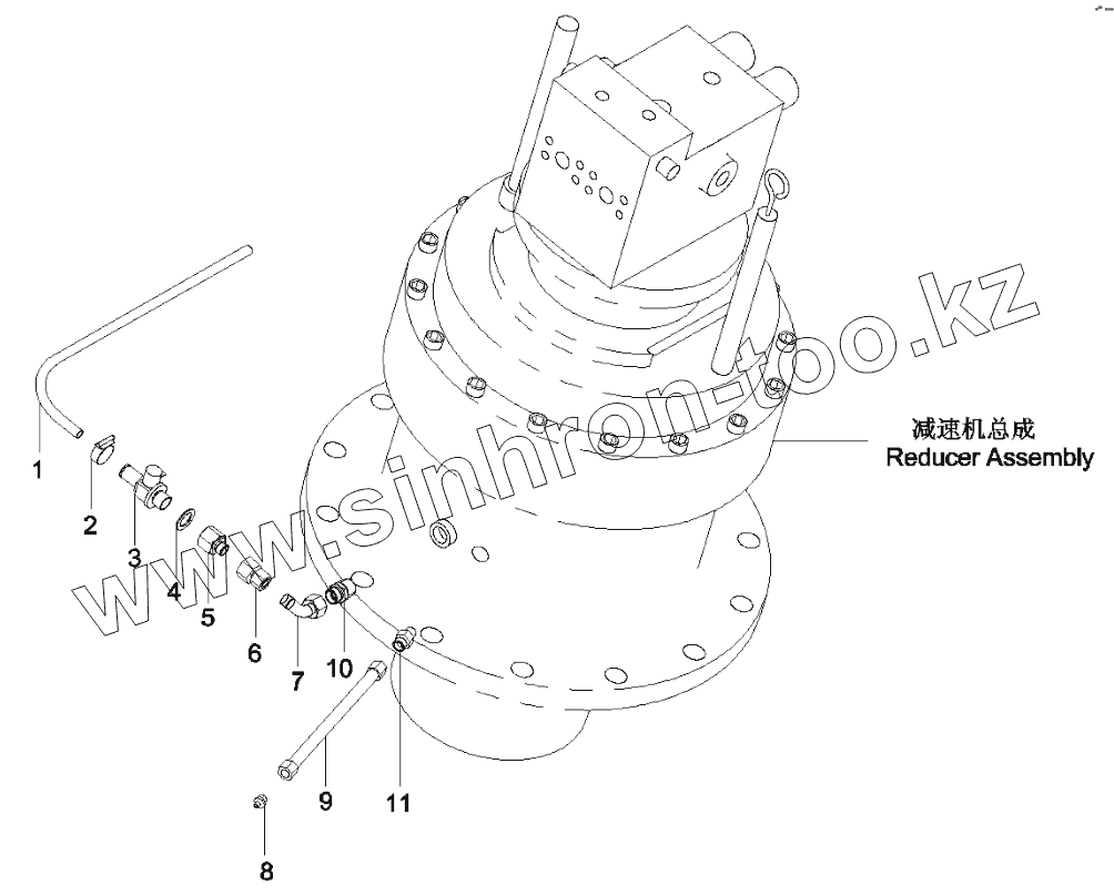 Каталог запасных частей к технике: SANY SY335C8. 11454048 Pipeline, main, hydraulic