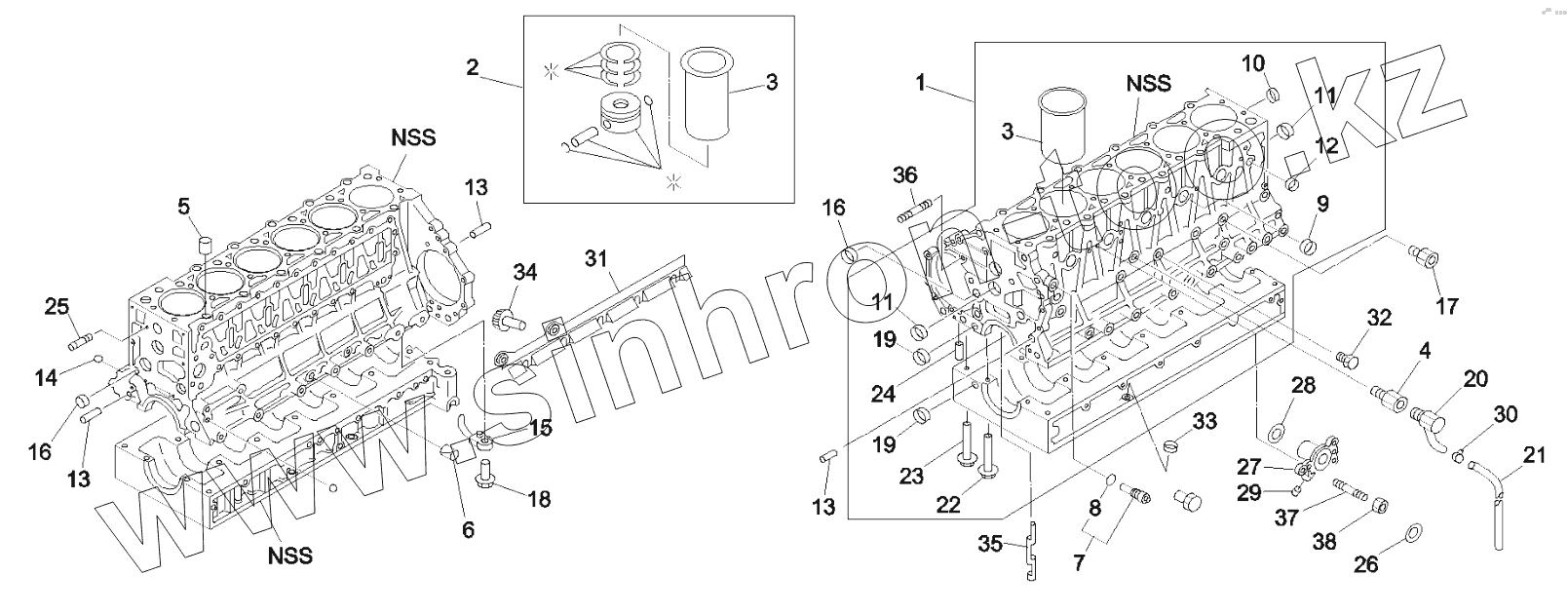 Каталог запасных частей к технике: SANY SY335C8. 60046508 Cylinder Block